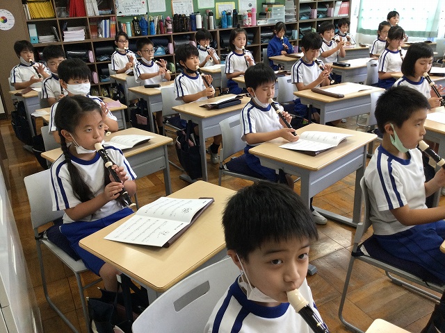 「ソ」の音を発するだけでも難しいところに、音の飛び越え・・・練習あるのみです! この「♪ねこ吹いちゃった」を制覇すれば、3年生が吹けるリコーダーレパートリー曲は6曲になります。