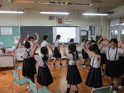 体を動かして、ゲームをして・・・・、伸びのある歌声でした。