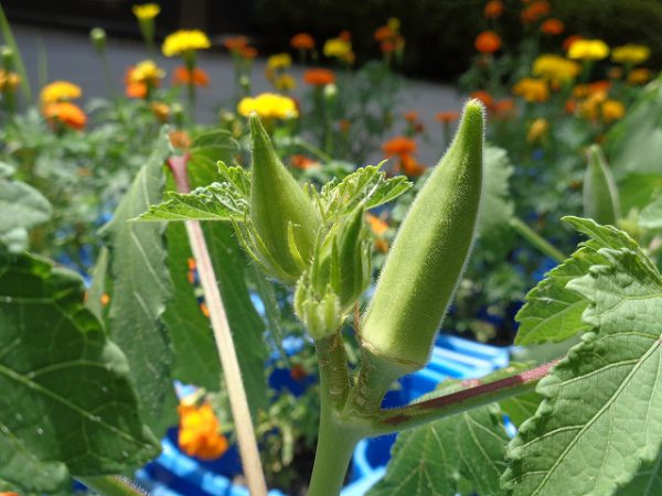 こちらは、4年生が育てているオクラ。食べ頃です。