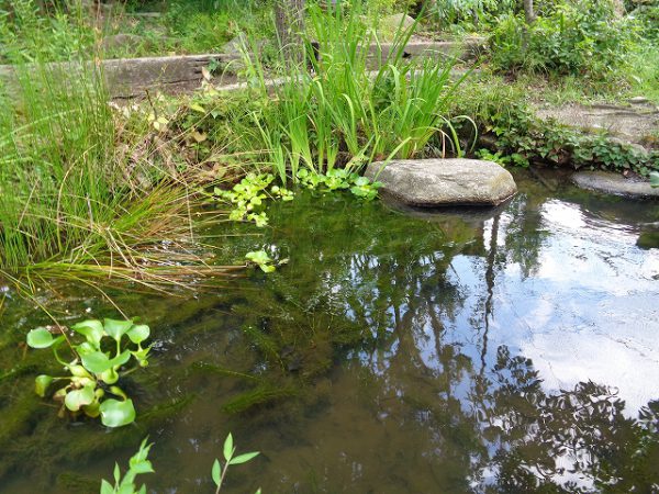 池の中では、メダカが気持ちよさそうにスイスイ泳いでいました。