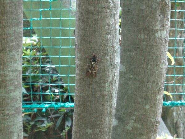 アブラゼミもクマゼミも、手を伸ばすと届くところにたくさん止まっています。