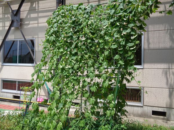 植物たちは、この夏休みの間に、ずいぶん成長し、いろいろいろな花や実をつけていました。