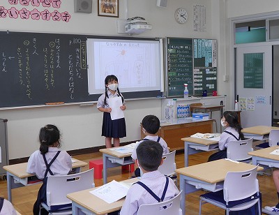 夏休みの絵日記をもとに、夏休みの出来事をみんなに紹介する学習をしました。