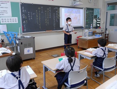 発表する人は、できるだけみんなの方を見て、はっきりと話すことをめあてにしています。