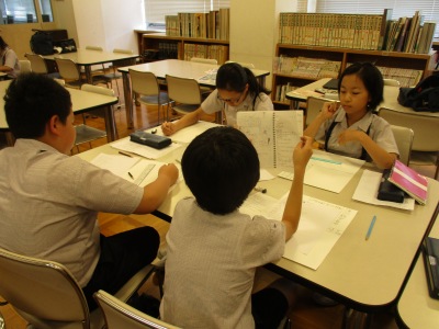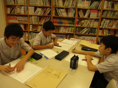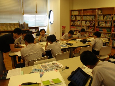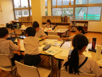 夏休み中後半、先週から参加者有志が学校に集まり、撮りためた写真から情報を集めたり、活動を思い出して文章にまとめて「報告新聞作り」を行っています。