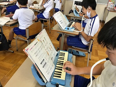 今学期からは、各教室でリコーダーや鍵盤ハーモニカの学習を始めていきます。