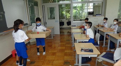係活動では、アーティスト係が手作りで「オニム」という遊び道具を作りました。今日一日で、箱をつなぎ、チップを手作りし、あっという間に完成!来週から休み時間の楽しい遊びが一つ増えました!