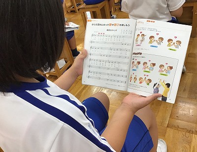 「陽気な かじや」という歌を練習しています。3拍子の音楽で、リズムが軽くて楽しい曲です。