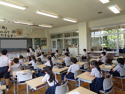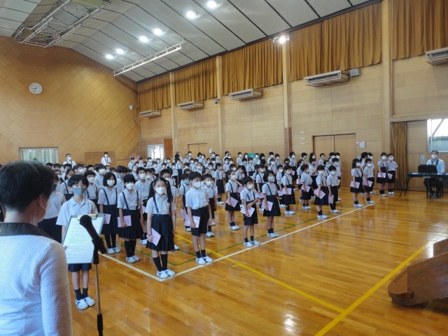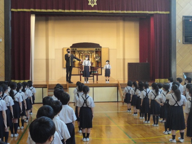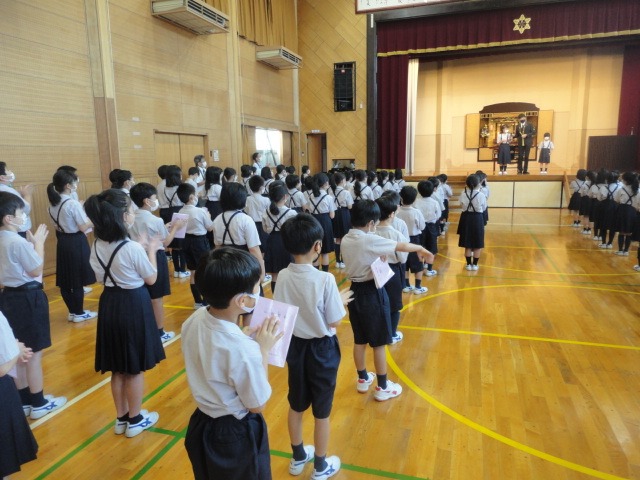 全校児童が講堂に集まり、第2学期の始業式を行いました。