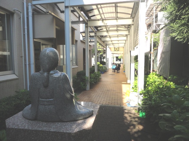 玄関先では勢至丸さまが見守る中、1~6年生が元気に登校しました。