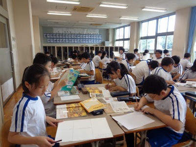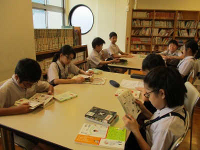 図書室です。夏休みの本を返却して、静かに本を読みました。