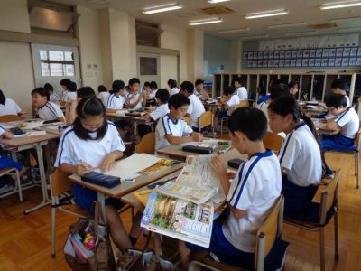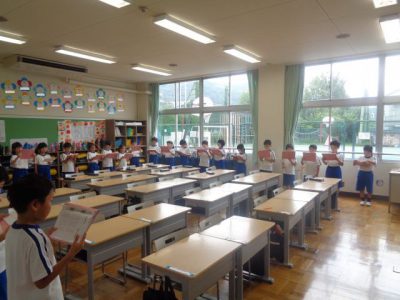 谷川俊太郎さんの「みんみん」や、論語を、音読しているところです。