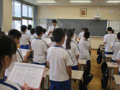 杜甫の「春望」を、お腹からの発声や姿勢に気をつけて、力強く音読しました。