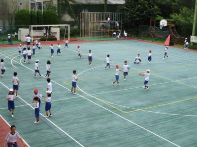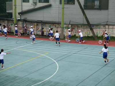 朝休みは、汗びっしょりで「キックベース」をする子ども達と出合いました。
