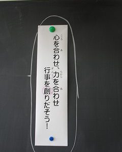 (写真の全校目標は、2年生の黒板に貼ってあったものです。)