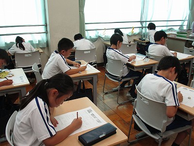 4年生は、1学期の「振り返り算数テスト」をしていました。