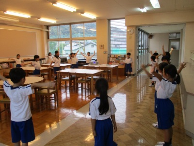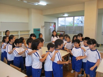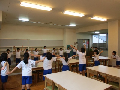 4年生リーダー数名を中心に、英語ラジオ体操に取り組みました。