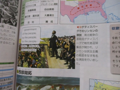 1校時は英語学習でしたが、この社会の時間でも、資料集に出ているゲティスバーグでのリンカーンの有名な英語スピーチに関心を持ち、深めようとした児童もいました。