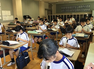 今日は、学校目標についてのお話の後、係活動について話し合いました。できるだけ自分のやりたい係で活動してもらうように決めました。1学期同様、積極的な活動ができれば嬉しいです。