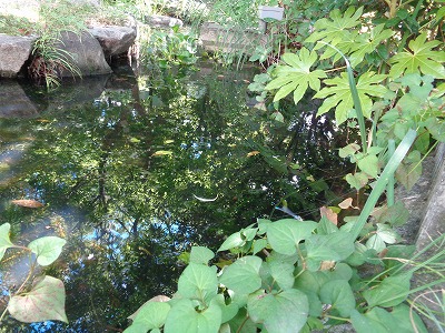池の中では、メダカが気持ちよさそうにスイスイ泳いでいました。