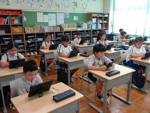 今日から毎朝、iPadでの英語シート(EEシート)が始まり、算数のお直しも含め、朝から忙しい全校生。