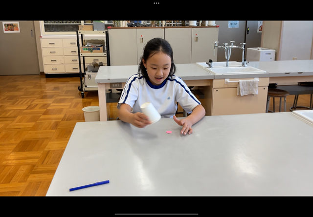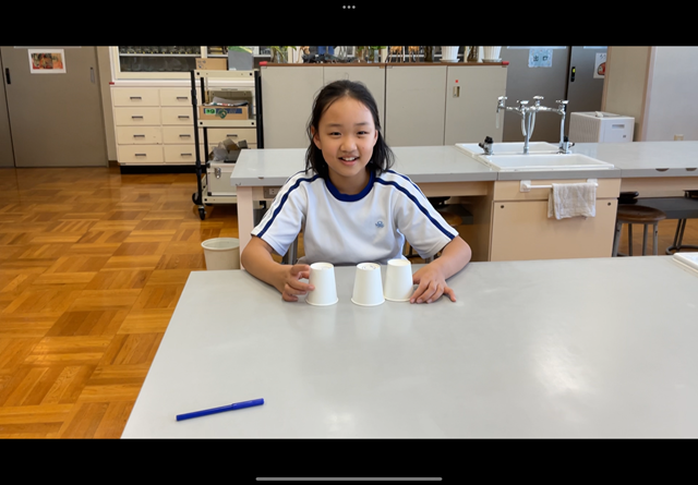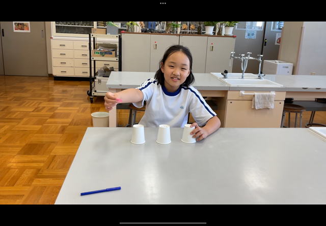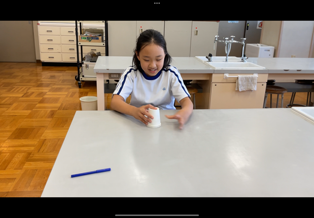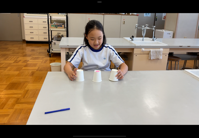 重ねた紙コップを元に戻すと、コインは紙コップの上から消えてしまう。