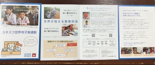 両側のメンバーが手にしているリーフレットは、"書き損じハガキ"が持っている"チカラ”を知らせてくれる内容が載っています。