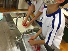 家庭科学習では、“ECO”にも注目し、少ない水を使うことを心がけます。