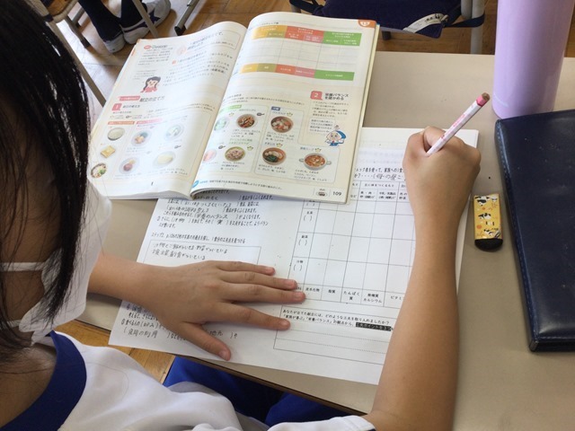 炭水化物やタンパク質、ビタミンなどの栄養素をバランス良く取り入れることの大切さや、食べる人の好みや旬の食材、費用面など多角的な見方をポイントにした献立を考える学習です。