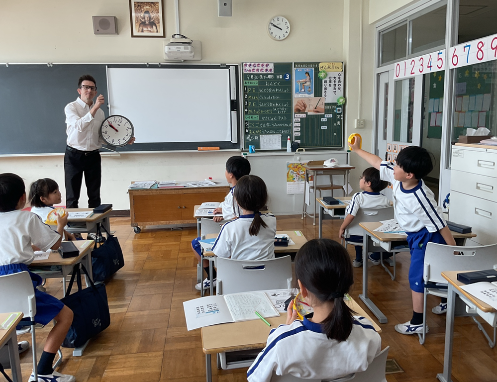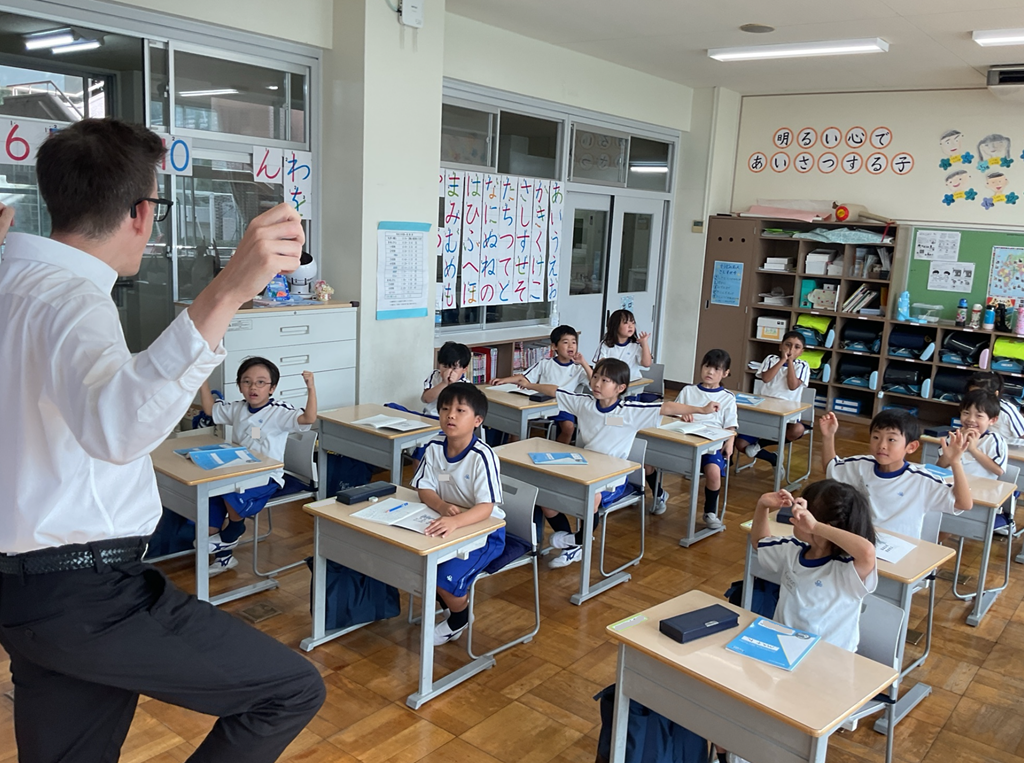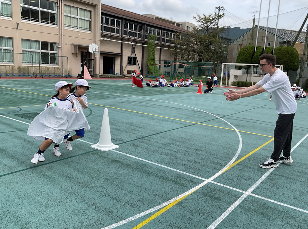 In preparation for sports day, the children were practicing their dance routine. I helped to describe what we were doing in English.