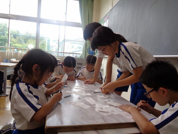 休み時間、イベント委員が、1年生教室で小さなイベントコーナーを設けました。