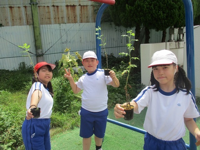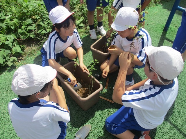 小学校では先日、4年生が「キクタニギク」の苗を京阪園芸より受け取り、栽培を開始しています。