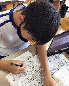 今学期から学習を進める場所が変わりました。習熟コースは6年教室で、発展コースは学習室で進めます。