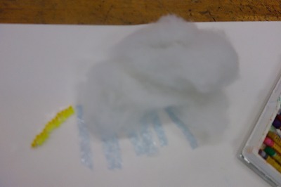 綿が雨雲になり,緩衝材(プチプチ)が雨にすることをひらめいたようです。