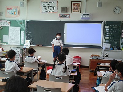 4校時の国語は、『ピラミッド』の練習問題をしました。後半の最後に『1分間スピーチ』です。