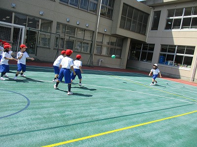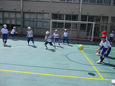 昼休みは、運動場で『王さまドッジ』をしました。みんな楽しそうに参加することができました。