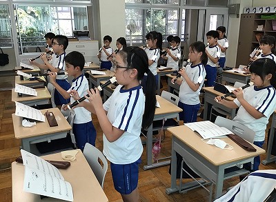 教室では、「♪ソロサンマ」という題名の曲を、リコーダー奏で練習しました。