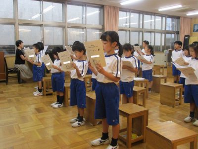 今日初めて歌ったとは思えないくらい、きれいな声で歌詞を覚えようとがんばっていました。