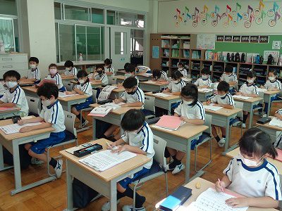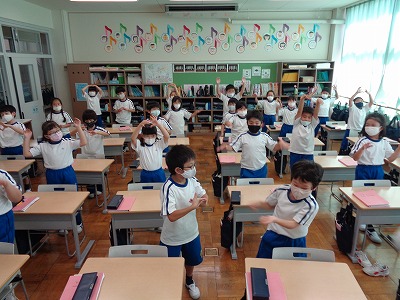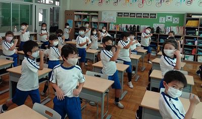 最後に、Eテレ「えいごであそぼwith Orton」に出てくる「ドクタージェイソン」の口ぐせを動きつきで覚えました。す。"Leave it to me. I'm a genius!"(ぼくにまかせて! ぼくはジーニアスだ!)という言葉です。楽しいので、流行ったらいいなぁと思っています。2年生のみなさん、ぜひ おうちでもやってみましょう!