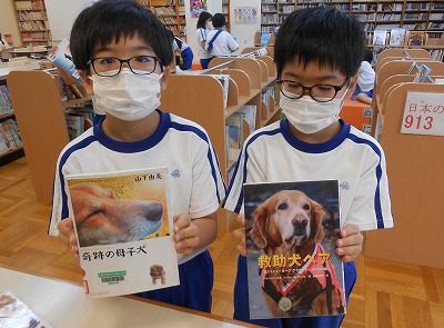 次は、図書室に移動し、昨日学習した「ノンフィクション」のお話探しに出かけました。