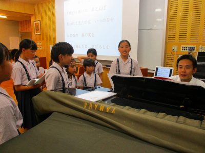 今日から、2学期の活動開始です。美しい歌声が音楽室に響き渡りました。