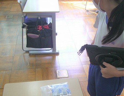 今日の理科は「水蒸気は、どこにでもあるのか」を確かめる実験です。ジッパー袋に保冷剤を入れると、水蒸気があれば水滴がつきます。