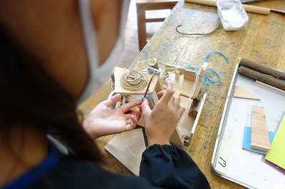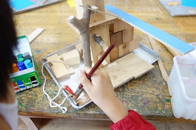 3・4校時の図工では、これまで取り組んできた「ひみつのすみか」の完成をめざします。