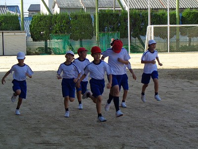 金曜日の朝根っこタイムは、マラソンでした。さわやかな青空の中、自分のペースで止まらずに走り続けるという事を目標に、5分間を一生懸命走りました。