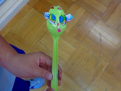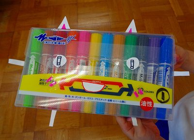 「大きな顔」の後は、画用紙にカラーペンで顔のパーツを描き…〈もの〉たちの顔を作る活動をしました。