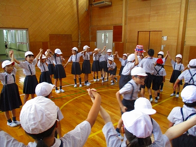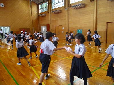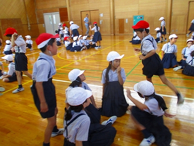 大きな一円になって「蚊が登場する遊び」をしたり・・・
