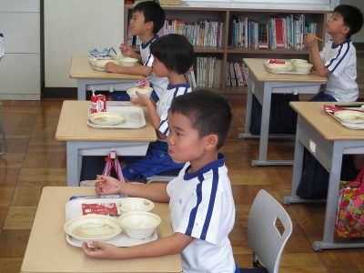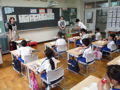 食育の学習までに給食を終え、話を聞く姿勢ができていました。