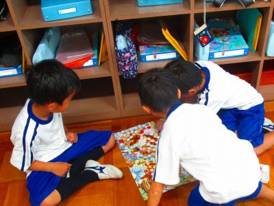 読書をしたり、算数セットにあるすごろくで盛り上がったり、秋のお花の絵を描いたりしながら、楽しく過ごしていました。