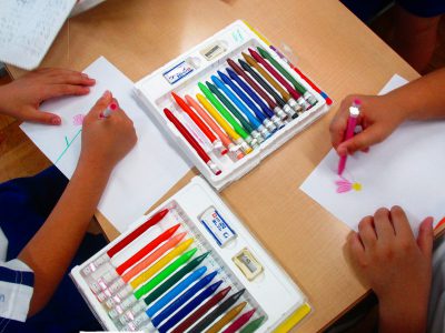 1人1枚、秋をテーマにした絵を描いて、みんなで貼り合わせるそうです。