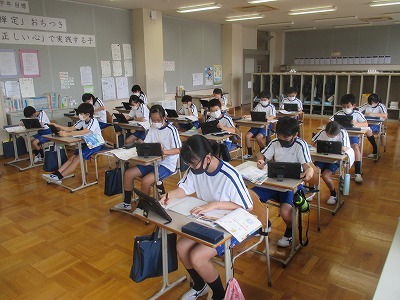 今日は、ロイロノートにその場面の写真を送り合い、「その楽器を調べたい理由」や「調べて分かった特徴」を交流し合いました。